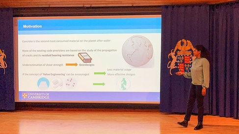CIRG member Hasini Weerasinghe presented her work "Shear Crack Analysis in Slender Reinforced Concrete Beams" at the recent St. Johns College Graduate Research Symposium. The event was hosted at St Johns College of the University of Cambridge. Hasini was part of a group of speakers covering a broad spectrum of topics from next generation green technologies to the treatment of depression and contemporary art, which shaped the symposium as an inclusive and engaging event. Hasini thoroughly enjoyed the opportunity to share her work on shear crack analysis with the diverse audience and many interesting discussions were had surrounding the research.
